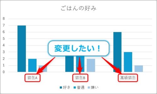 Excel(エクセル)のグラフの横軸の名前を変更、編集する方法