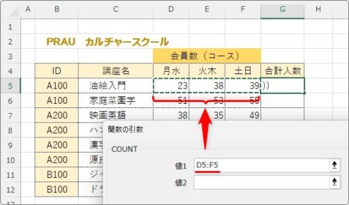 数値データを入力するCOUNT関数を使用するのがポイントです。