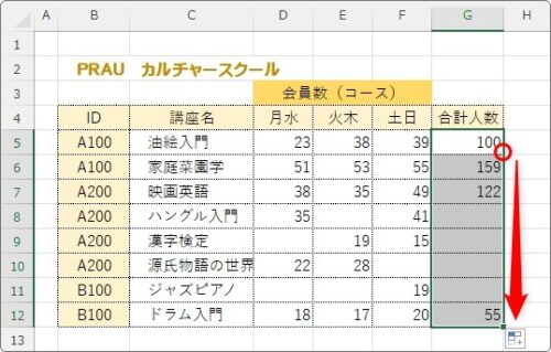 [OK]を押して、結果をオートフィル機能でコピー。