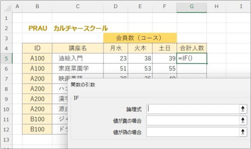 IF関数の引数画面が表示されたら、