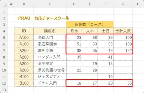 三か所のデータ全て入力されている場所だけが計算されているのが分かります。