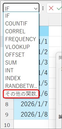一覧の一番下にある[その他の関数]を選びます。