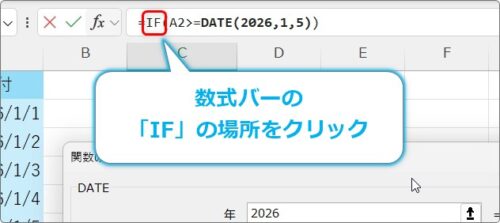 [数式バー]のIFの文字をクリックします。