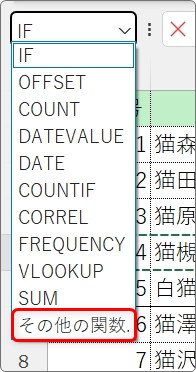 一覧の一番下の[その他の関数]をクリック。