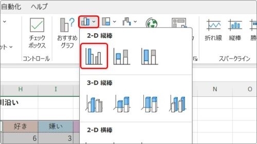 後は普通に[縦棒/横棒グラフの挿入]→[集合縦棒]を選ぶと、