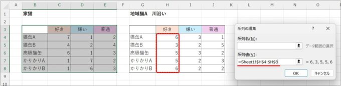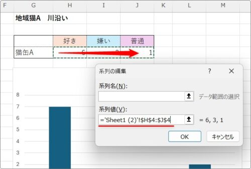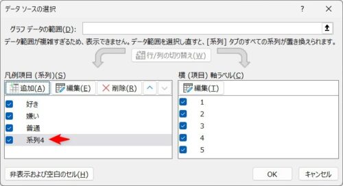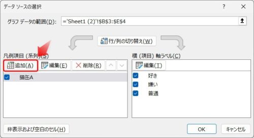 [OK]をクリックすると、前の画面に戻り新たな系列が追加されているのが確認できます。