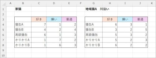 1つ目の表と2つ目の表データがどこにあるのか分かり難いですね。