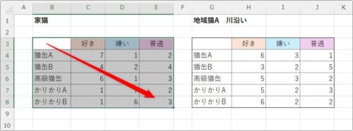 そして、2つ目の表のデータを範囲を選択します。