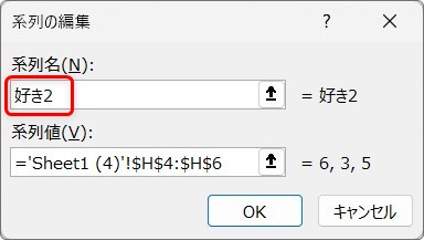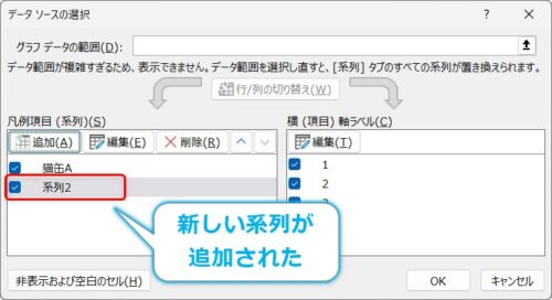 いったん[OK]をクリックすると、新しい系列が追加されます。