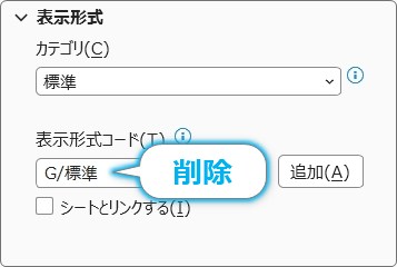 同じ作業ウィンドウの下の方にある、[G/標準]という文字を削除して、