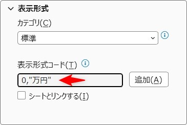 これで、下画像のように下3桁が非表示になり、「万円」が付きます。