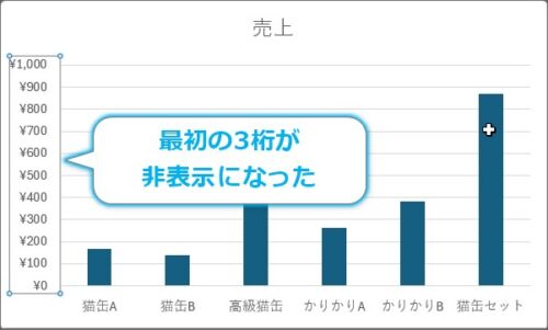 集合縦棒グラフを作成しました。では、縦軸の単位を「万円」に変更していきます。